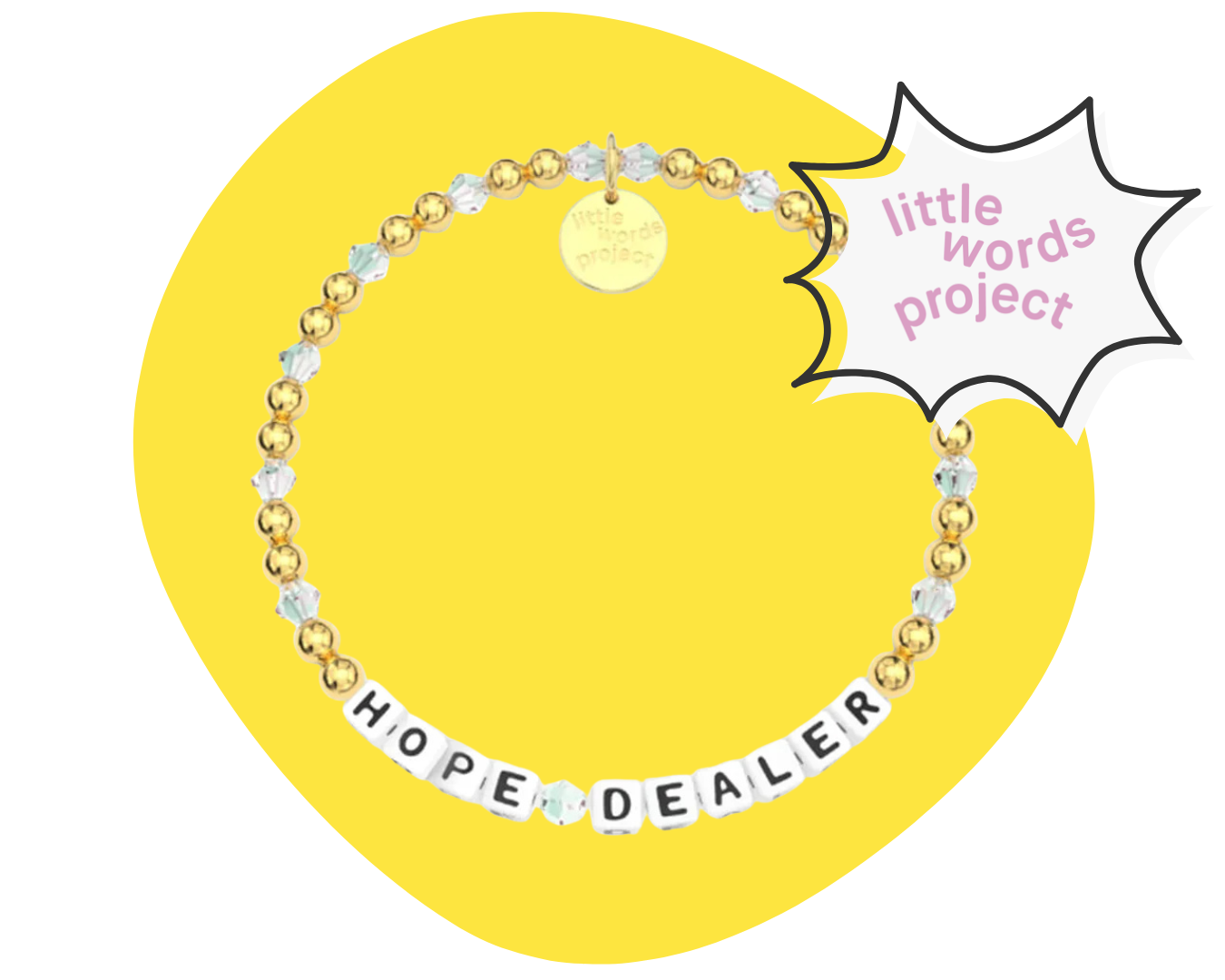 You can purchase an exclusive HOPE DEALER bracelet from Little Words Project! Designed by our Founder, Tay Scheibe, this is more than just jewelry, it's a bold statement of support for our Golden Heroes. 25% from each bracelet sold goes directly to our mission to give children with cancer the opportunity to be kids.
